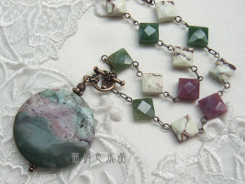引き続きインペリアルジャスパーのネックレスを作っています。