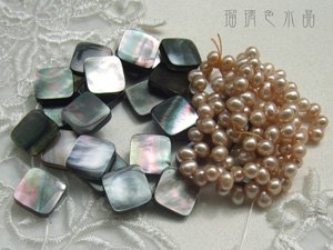 ブラックシェルのスクウェアと、シャンパンゴールドのパールです。
