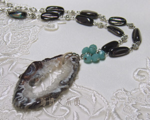そして色味が欲しかったので、アマゾナイトのボタンカットでフリンジを下げました。