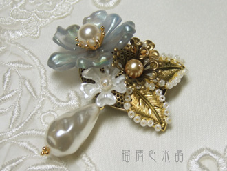 メタルフラワーやリーフ、パール加工のお花などを使用して・・・