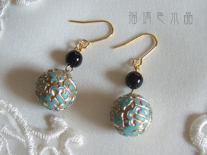 メインのゴールドの彫が入ったターコイズのビーズのうち、ホールが貫通していないものが