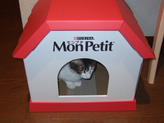 でもこれ、一見立派ですが家型の爪とぎ板なんです。ダンボールだし・・・