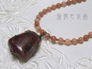 チェーン部分はちょっとくすんだピンクのチェリーストーンを留め金まで繋いで・・・