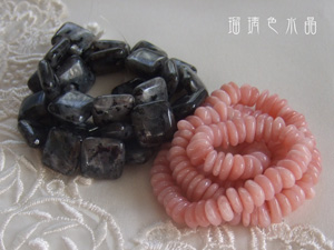黒っぽい石はブラックフェルスパーです。グレーの地に黒い班が入り、
