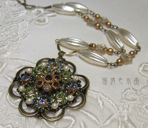 長めのすじパール、ブロンズコートのお花ビーズやラウンドなどで上品に・・・