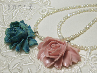 先日作った薔薇パーツと淡水パールのネックレスの色違いです