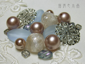 水色のビーズは、蛍光灯の下ではこのお色ですが、