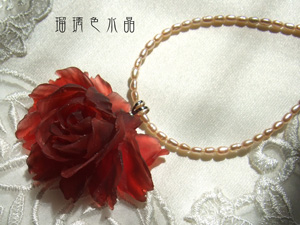 チェーン部分はオレンジ色の小さな小さな淡水パールのライスを繋げて・・・