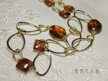 琥珀風の樹脂ビーズを使用した大振りなチェーンネックレスです