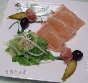 パール柑の生ハム巻きとプランターで採れたレタスのサラダです。