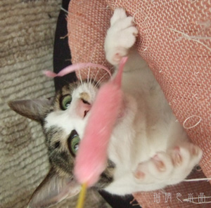 じゃらしの先についているリボンが、振ると鳥の羽音に聞こえるという