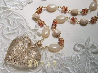 チェーン部分のクリーム色のビーズは同じですが、薄いピーチの