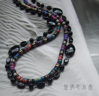 ウッドビーズとグラスビーズのトライバルテイストのネックレス。