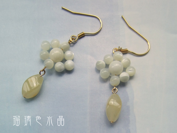 こちらはイエロージェイドと白珊瑚、マザーオブパールのピアスです。