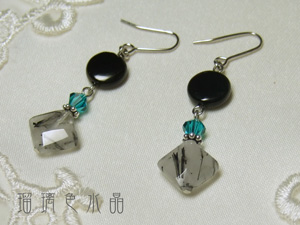 こちらはブラックトルマリンクォーツのカット入りスクウェアに、スワロクリスタライズと