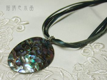 トップに下げたのは大きなアバロン(あわび貝)のシェルパーツです。