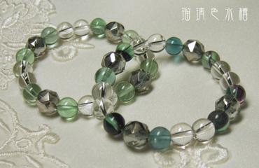水晶のクリアな透明感とフローライトの微妙な色合い、シルバーアクアオーラの