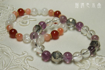 左は赤めのう・ピンクボツアナアゲート・クラック水晶のラウンドとボタンで・・・