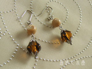 カフェオレ色のマザーオブパールのピアスです。