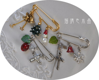こちらのクリスマスピンブローチを差し上げます。