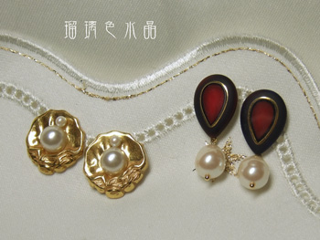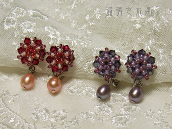こちらは今回の新作でUPしたヴェネチアンコンテリエと淡水パールのピアスの