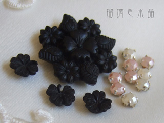 黒いお花とクローバーはフレンチジェットという大変珍しい素材です。