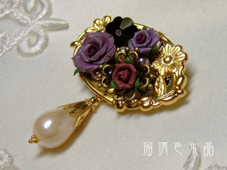 ブローチ台のゴールドと紫のバラの組み合わせがとってもエレガントで美しいです♪