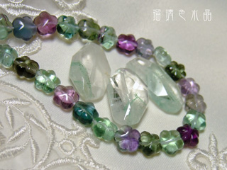 真ん中はグリーンファントムクォーツで、周囲はお花の形のフローライトです。