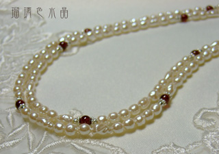 こちらに美しいワイン色のガーネットとシルバーカラーのスペーサーや