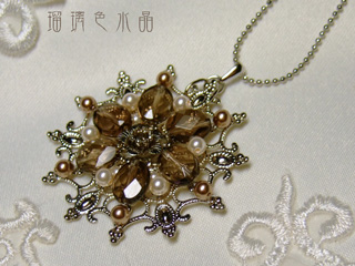 スワロパールを留め付けて、中心にはメタルの薔薇を置いてみました。