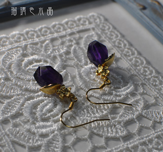 綺麗に色の乗ったカットタンブルのアメジストのピアスです。