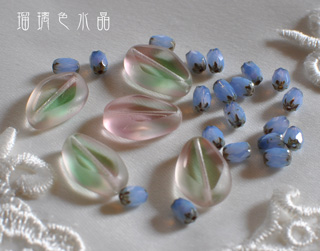 綺麗なグリーンとピンクの2トーンビーズは、縁がフロスト加工されたグラスビーズです。