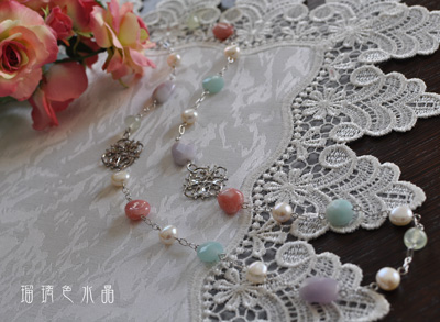 さりげないけれど、可愛らしい色合いで春風のようなロングネックレスに仕上がりました。