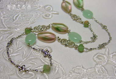 春の若草のような瑞々しいロングネックレス&ブレス・・・オススメの一品です。
