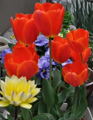 午前中の晴れているうちにと、咲き揃ったチューリップの写真を撮りました。