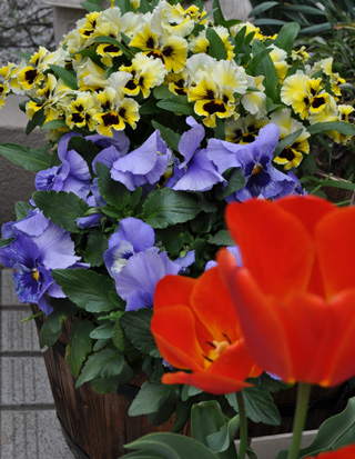 丈夫で花期の長い花を大き目の鉢に植えています。