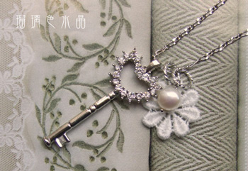 こちらはラインストーンが入ったハートキーとレースモチーフ、淡水パールの