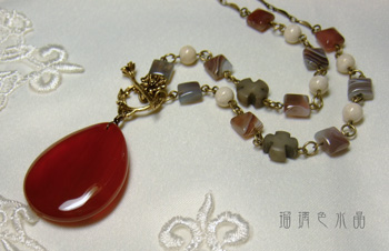 こちらはつるっと滑らかな赤めのうのドロップと、縞模様が美しいボツワナアゲート、