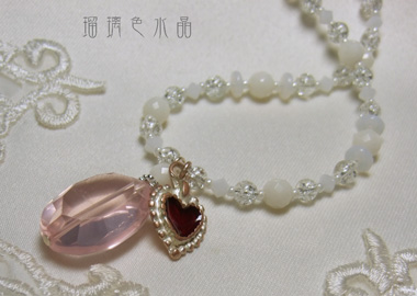 昨日のアメジストに続いて、今日はローズクォーツでネックレスを作りましたよ~