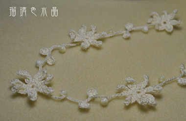 ところどころにマザーオブパールのラウンドを編みこんでいます。