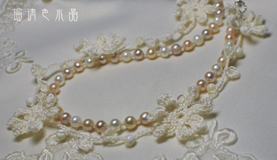 クロッシェと淡水パールの5wayネックレスです。