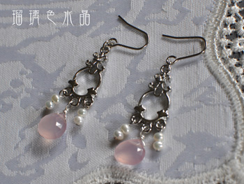 使用した石はピンクカルセドニーのマロンカット。