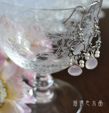 先日もこちらでご紹介したピンクカルセドニーのピアスです。