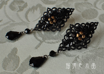 ブラックのフィリグリーにチェコやヴィンテージビーズを留め付け、
