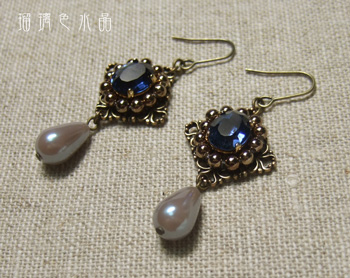 こちらもヴィンテージスワロフスキのグラスストーンの周囲にドログリーのビーズを巻き、