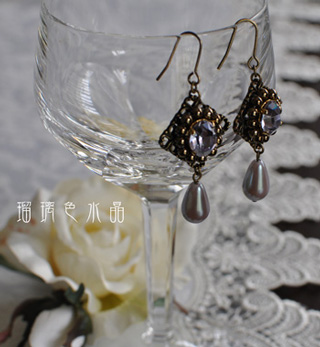 ヴィンテージスワロストーンとサフィレット風ドロップパールのイアピアです。