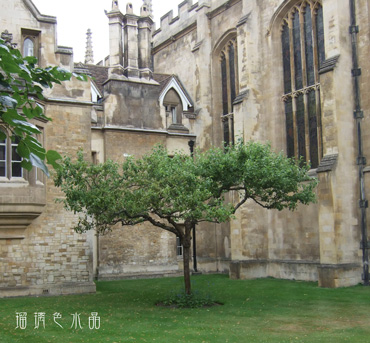 アイザック・ニュートンが暮らしていたという部屋の前庭にはりんごの木が・・・
