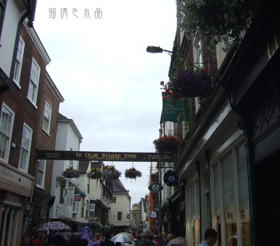 中世の面影を残すシャンブルズと呼ばれる小路は、細く曲がりくねった石畳の道の両側に、