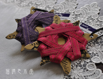 木製の糸巻きに巻いたレースなど壁面いっぱいに下げてありました。