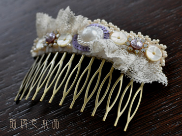パープルにして、それに合わせてヴィンテージスワロのフラワーコンポーネントの